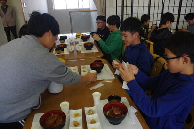 朝早い出発で、現地に到着する頃には、お腹がペコペコです。昼食は地元名物のソースカツ丼を美味しくいただきました。