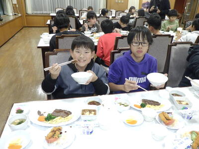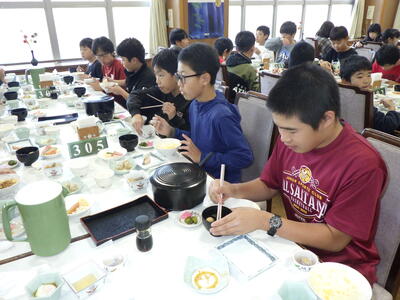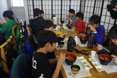 朝食は和食です。普段はパンを食べることが多い子どもたちもいますが、福島のお米をしっかり食べて、2日目をスタートです。