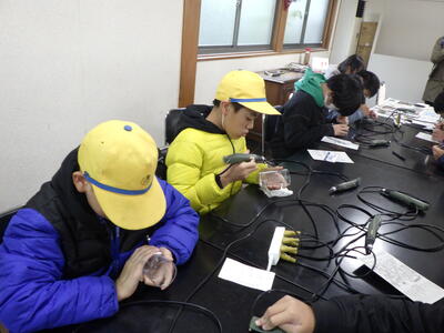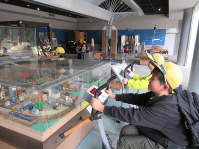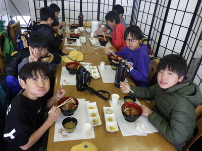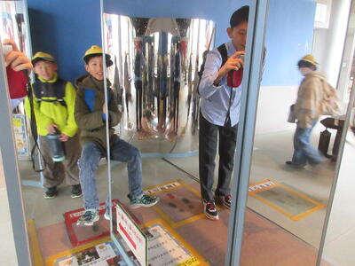 向井千秋子ども記念館は、日本人初の女性宇宙飛行士の向井さんの名前が付いた、宇宙や科学について学べる施設です。温かい室内でお弁当を食べました。早い出発時間でお腹も空いたことでしょう。みんなでお弁当を美味しくいただきました。作ってくれた家の人に感謝です。少しの時間ですが、見学もできました。体験型の展示物もあって、実際に手で触れて楽しめました。