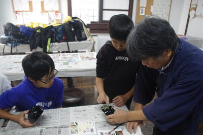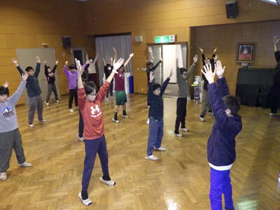 2日目の朝は、猪苗代で今季一番の冷え込みとなり、外気温は1℃!寒いはずです。起床して布団を片づけた部屋は、朝の集いに移動です。ラジオ体操で少し目が覚めたでしょうか。先生の話にも視線を落とさず耳を傾けました。