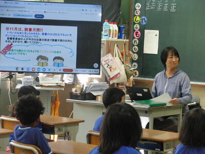 今月の生活目標は、「すすんで読書をしよう」です。図書担当の先生から読書月間の取組についてオンラインでお話がありました。すでに4月からたくさん本を読んでいる子どもたちがたくさんいます。年間をとおして目標の冊数に達するようにがんばっています。