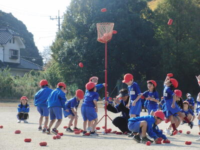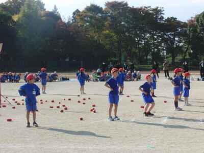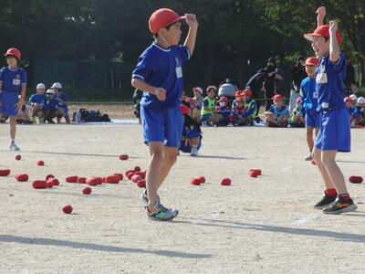 1・2年生「チェッコリ玉入れ」は、腰フリフリダンスでかわいく踊っている姿と、かごに向かって玉を夢中で投げ入れる姿が対照的で、とても楽しかったです。