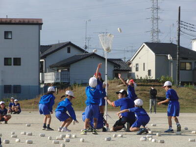 運動会に向けて、昼休みに全校児童で大玉送りの練習を行いました。高学年が中心となって声をかけ合い、全員で協力して大玉を送る姿が印象的でした。本番に向けて、さらに団結力を高めていきます。