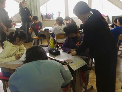 豊春中の1年生5名が11日と13日のわずか2日間ですが、職業体験学習で宮川小に来てくれました。子どもたちにとって教師という職業は、一番身近な存在かもしれません。学校に通っていた頃とちがった視点で、学校や教師をどのように見て、体験して、感じるか、有意義な2日間になってくれればと思いました。学習を補助したり、一緒に遊んだり、子どもたちも嬉しそうでした。