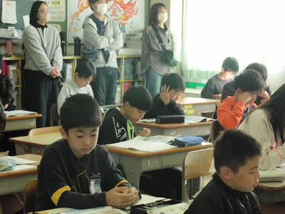 5年生が総合学力調査を実施しました。普段の単元テストとは違う形式の問題で、みんな集中して取り組んでいました。