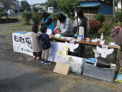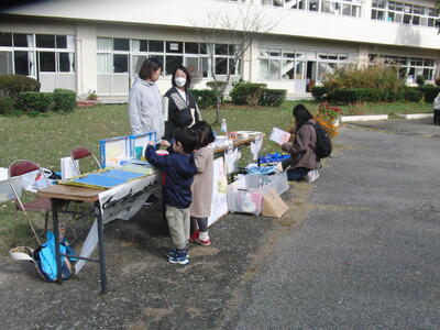 PTAの役員のみなさまのご協力により、土曜参観の日に合わせて「もったいないの会」の活動が行われました。事前に各家庭から収集した物品をきれいに整理して陳列し、必要としている方へ安価に譲る取組です。成長に合わせて買い替えるのは大変なので、大変ありがたいです。