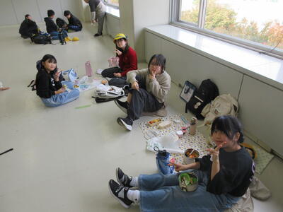 夢の森公園では、気持ちの良い秋風の吹き抜ける大屋根の下でお弁当を食べました。