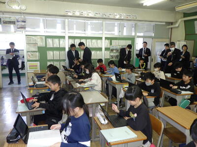 今日は市と県の教育委員会の先生方が、子どもたちと先生方の授業を参観する日です。子どもたちも緊張気味ですが、先生方も授業の内容や方法について成果や課題を話し合うので、とても緊張します。主に生活科や総合が中心に授業を公開しましたが、どの学年も活発な話し合いや活動を観ていただくことができました。