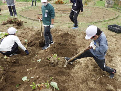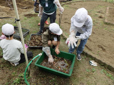 そんな中、花壇でパンジーとチューリップの球根の植え替え作業をしていたのは栽培委員会です。植え替えをしたら、毎日の水やりもします。これからもがんばってください。