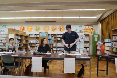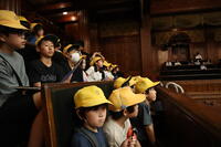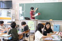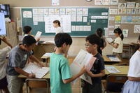 3年生がいろいろな先生にインタビューしながら学校の歴史や秘密を調べています。