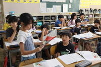 1年生は、外国語学習、音楽の授業です。