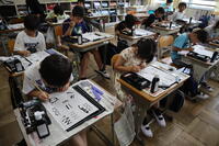 1年生はタブレットで写真をとる練習をしていました