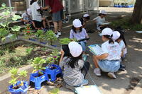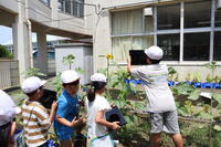 生活科の学習で、夏野菜の観察をしています。