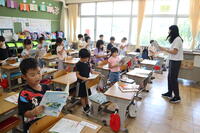 今日の読み聞かせは2年生 雨など季節に合わせたお話を聞かせていただきました
