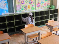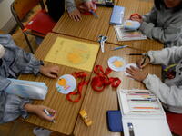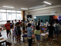 クラスごとに、それぞれの担当の場所に移動し、カラーボードを用意しています。
