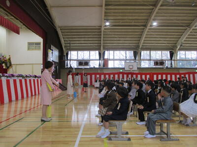 卒業証書授与式当日に参加のできない1~4年生と、6年生との最後のお別れです。