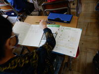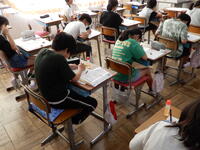 しっかりとお手本を見て、一字一字丁寧に練習しています。