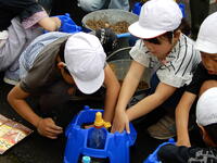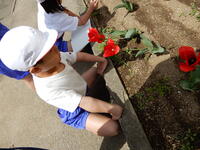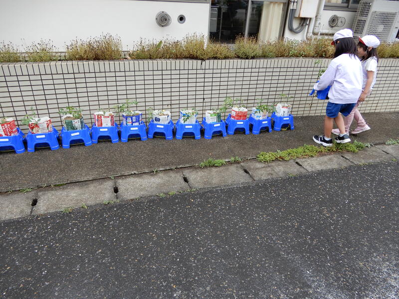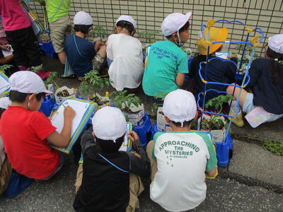 午後には雨もやみ、校庭でミニトマトの観察をする2年生の姿がありました。