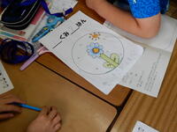 影の様子をもとに、時間の経過と太陽の位置の関係について学んでいます。