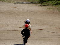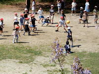 前半の部の今日は、外でみんなで笑顔いっぱいに遊んだり、