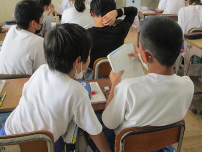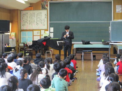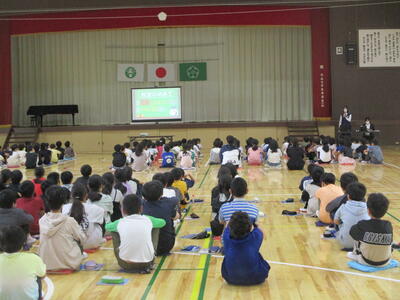 5・6時間目に音楽室で総合的な学習の時間の発表会を行いました。