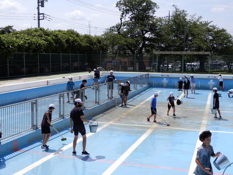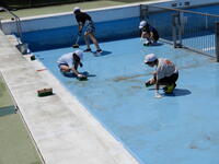 来週には6年生(プール本体中心)、先生方(仕上げ)もプール清掃を行います。