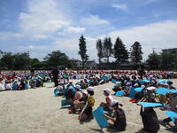 最後に6年生代表児童を中心に、全校児童からエールを送りました。