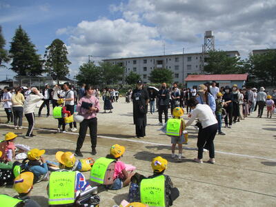 保護者の皆様にも訓練に参加いただいた「引き渡し訓練」では、