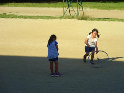 本日の朝は、さわやかタイム。校庭で児童が運動します。
