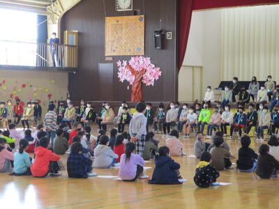 今年度は、感染症対策のため学年ごとに6年生へお世話になった思いを伝えます。