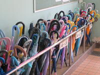 今日は朝から雨が降っていました。傘を差しながら登校した桜っ子、きちんと傘を閉じて丁寧に傘立てに置いています。