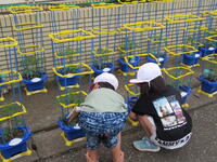 2年生は、先日植えたミニトマトの鉢に支柱を立てました。その後、土日の休みのことも考え、水をたっぷりあげました。