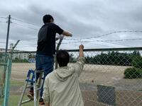 今年度1回目のおやじの会の活動が5/22(土)に行われました。曇り空でしたが、何とか雨も上がり、おやじの会の皆さんと教職員あわせて6名で活動しました。今回はプールフェンスにある有刺鉄線の補修作業を中心に行いました。おやじの会の皆さん、ありがとうございました。