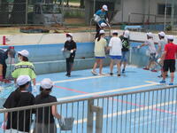 プール清掃を行いました。高学年の児童及び担任が、クラス交代交代で実施しました。昨年度はプール清掃を行わなかったため、2年分の泥やごみがあり苦戦しましたが、みんな一生懸命取り組み、きれいになりました。放課後、教職員で最後の仕上げを行いました。
