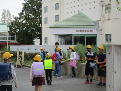 交通指導員さんなど、たくさんの指導者の皆様がご来校くださり、