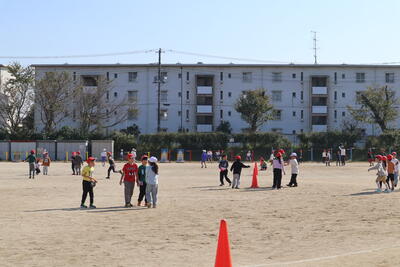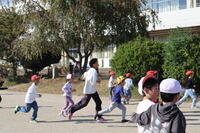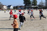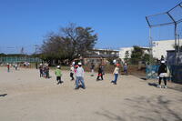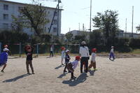 長い昼休みは鬼ごっこやドッジボールで先生と一緒に楽しく遊んでいます