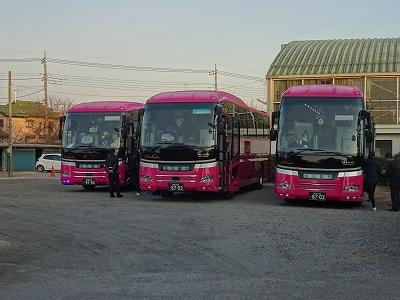 (↑ 7:30 朝の出発式を終えて、バスは出発しました。)