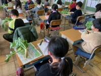 2年生の生活科の授業です。2年生は大根を育てています。今日は、間引きした大根を見ながら観察記録を書いています。
