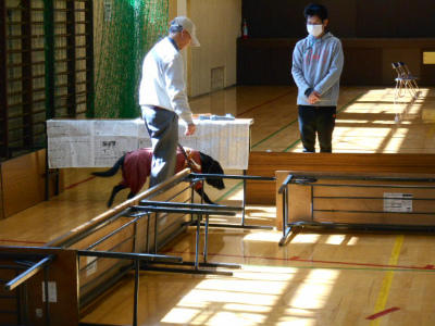 4時間目には、杖を使った時と盲導犬に誘導された時とのスピードの違いや安全性の違いについて、実際にコースを歩いていただきながら説明を受けました。子どもたちは実際に盲導犬が誘導するところを見ることで、盲導犬の凄さを実感していました。