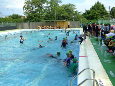 先週は着衣水泳週間でした。各学年で衣服や靴を身につけたままプールに入りました。