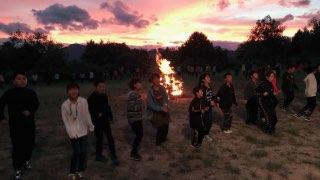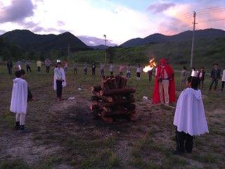 キャンプファイヤーが始まりました。火の神と火の精が登場です