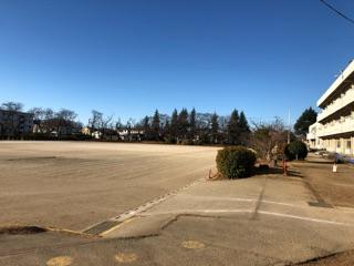 (↑ 本日の学校。風は冷たいですが、空は青く晴れています。)