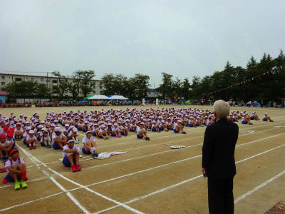 本日は曇りの朝となりました。いよいよ明日は運動会です。朝は最後の全体練習が行われます。