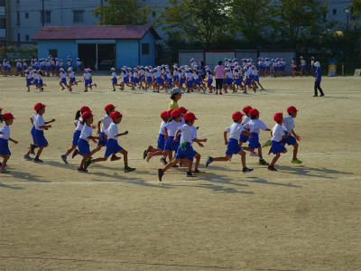 本日の朝も自主マラソンです。子供たちが校庭に出て、それぞれのペースで頑張って走っています。とても活気のある朝の光景です。