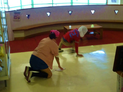 下の写真は、本日の清掃の様子。職員室前を掃除してくれている児童の様子です。本校の掃除の約束・無言清掃に取り組んでいます。