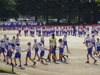本日は、今週の木曜日に迫った陸上大会に向けて、選手の壮行会がありました。各種目の選手がデモンストレーション演技を披露し、会場の児童から大きな拍手を受けました。