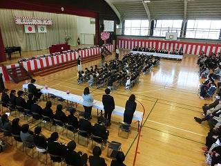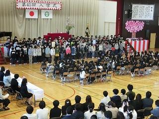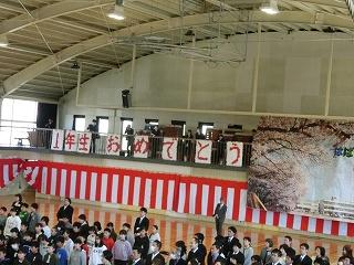一年生は「入学おめでとうございます」と呼びかけると、元気に「ありがとうございます」と答えます。