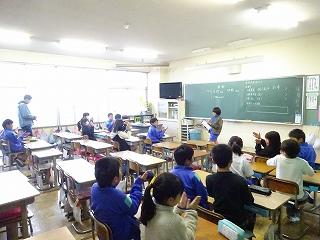 今日は、二年生が主催して「一年生といっしょに遊ぼうの会」が開かれました。二年生が雄一年生を招いて、グループごとに工夫して校庭で一緒に遊びました。鬼ごっこ、ドッジボール、なわとび、だるまさんがころんだ、等々の遊びで、みな楽しそうに仲よく遊びました。二年生がお兄さん・お姉さんとして大活躍しました。