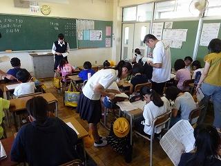 サマースクールでは、各教室で子供たちがプリントに取り組んだり、わからな所を教えてもらったりしています。今年のサマースクールも、サポートティーチャーとして、共栄大学・庄和高校・葛飾中学校の学生・生徒さんが来校して、本校の先生方と一緒にマル付けをしたり、子供からの質問に答えたりしてくれています。