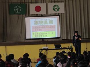 後半には、代表児童も参加してのロールプレイも行われ、誘われた時の断り方について学びました。薬物の問題を他人事のように感じていて子どもたちも、身近な問題として考えさせられたようです。